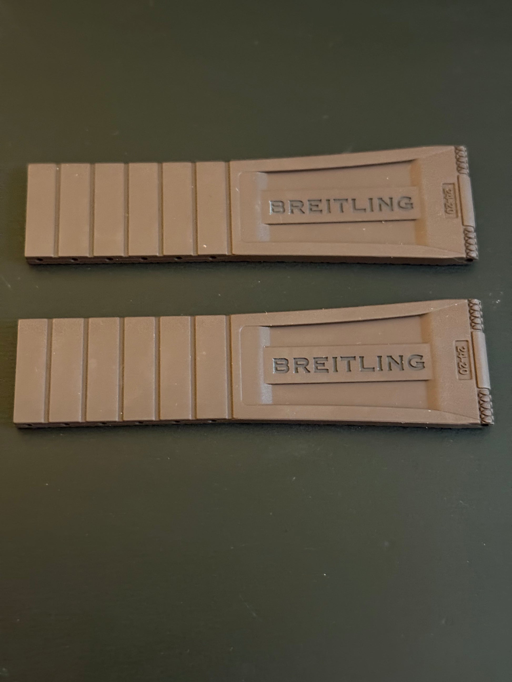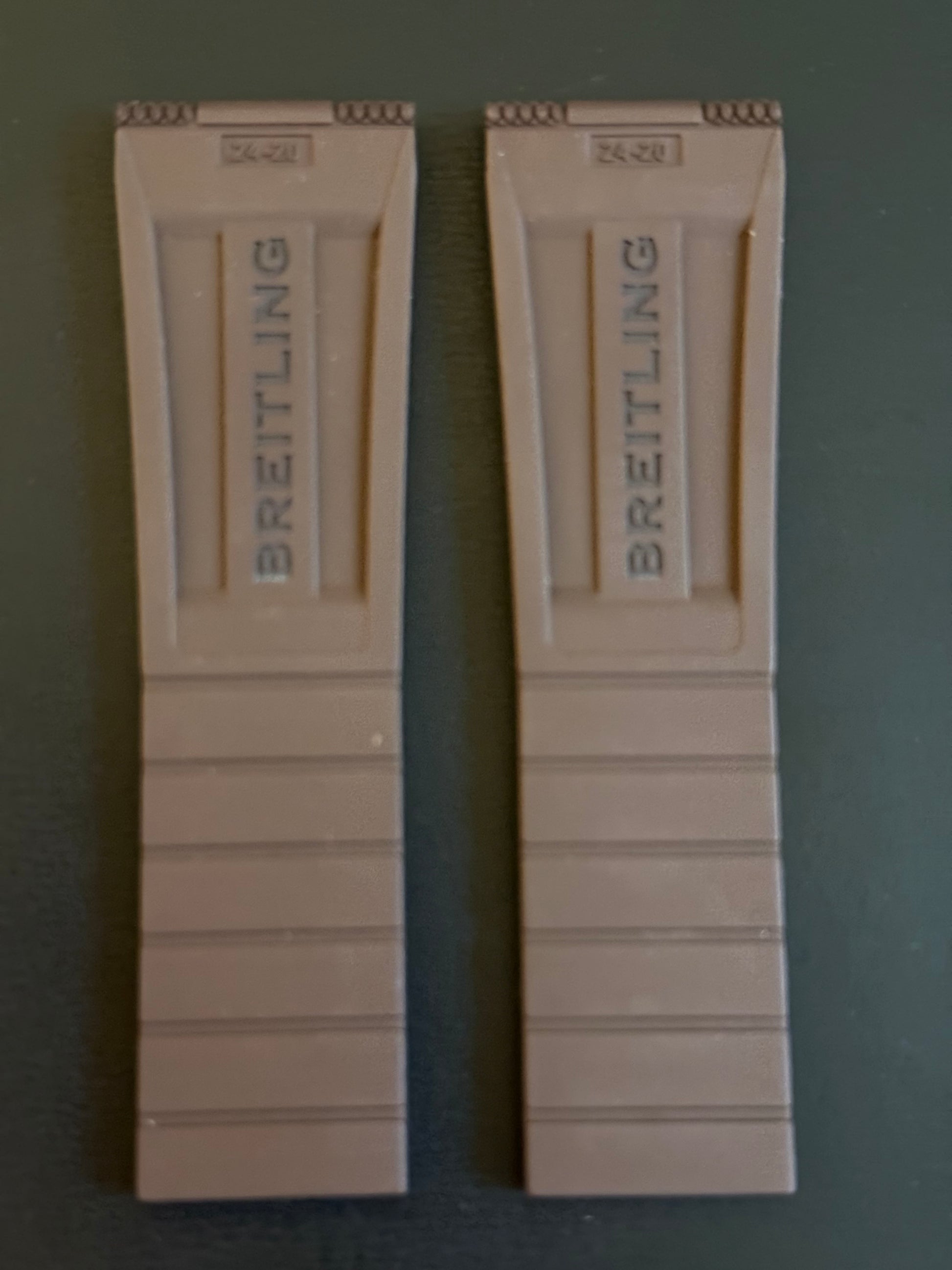 Enhance the style of your Breitling watch with this 24-20MM deployment Diver Pro model rubber strap. The two-piece strap has a band width of 24MM and is compatible with 20MM Breitling deployant clasps (if require I have for sale in steel and PVD or DLC). The color and theme of this wristwatch band perfectly complements the diver style of the watch.