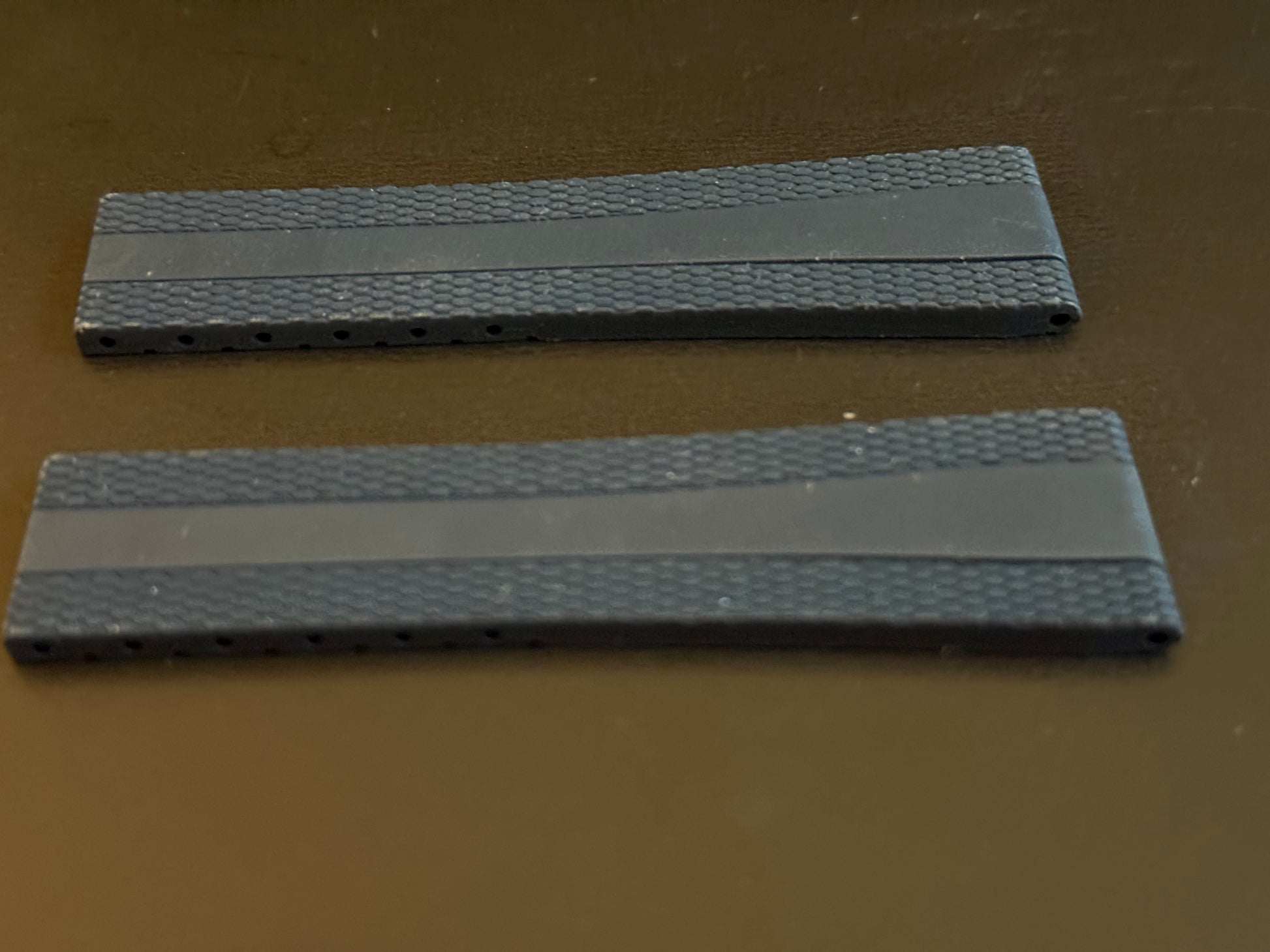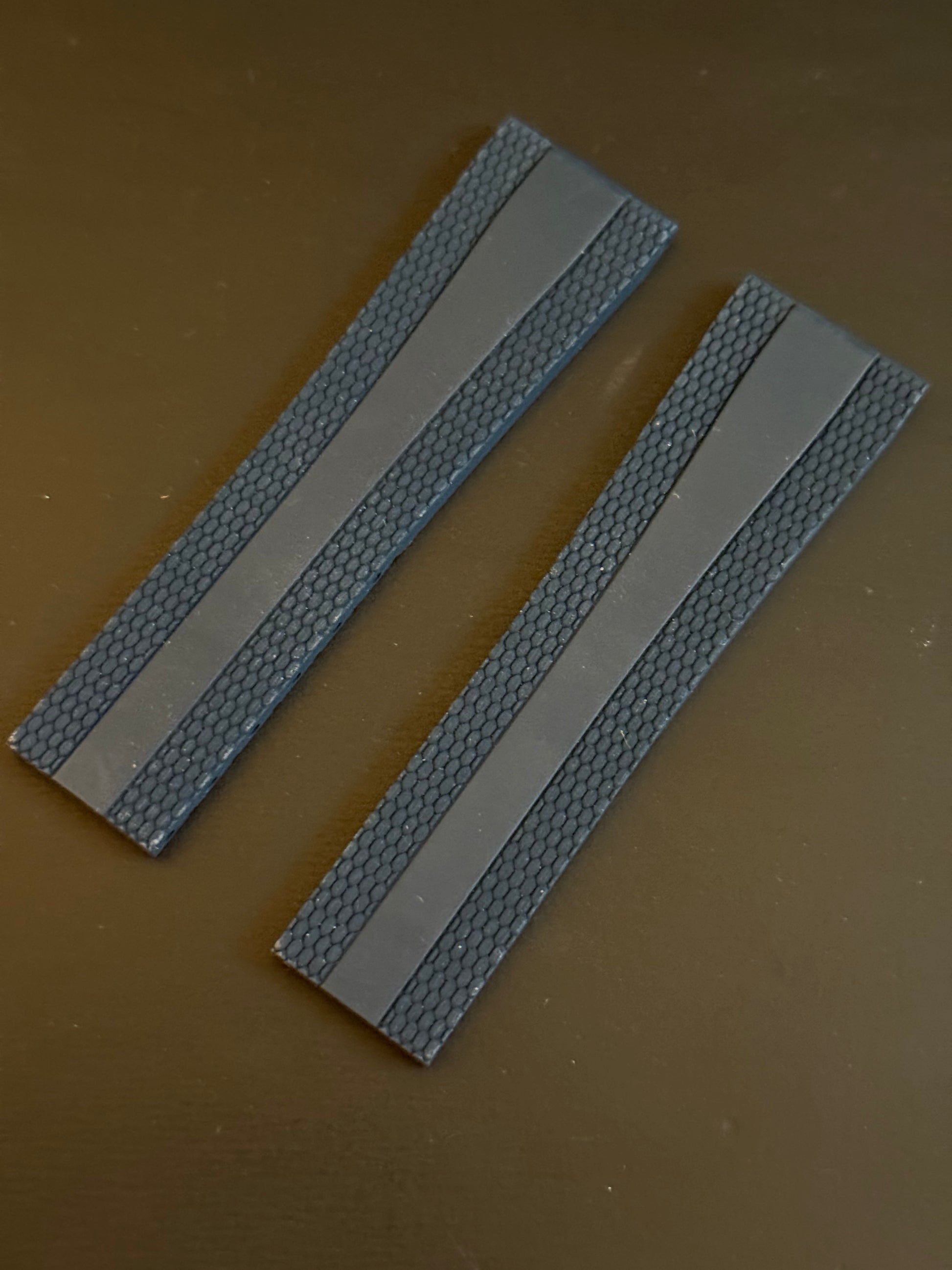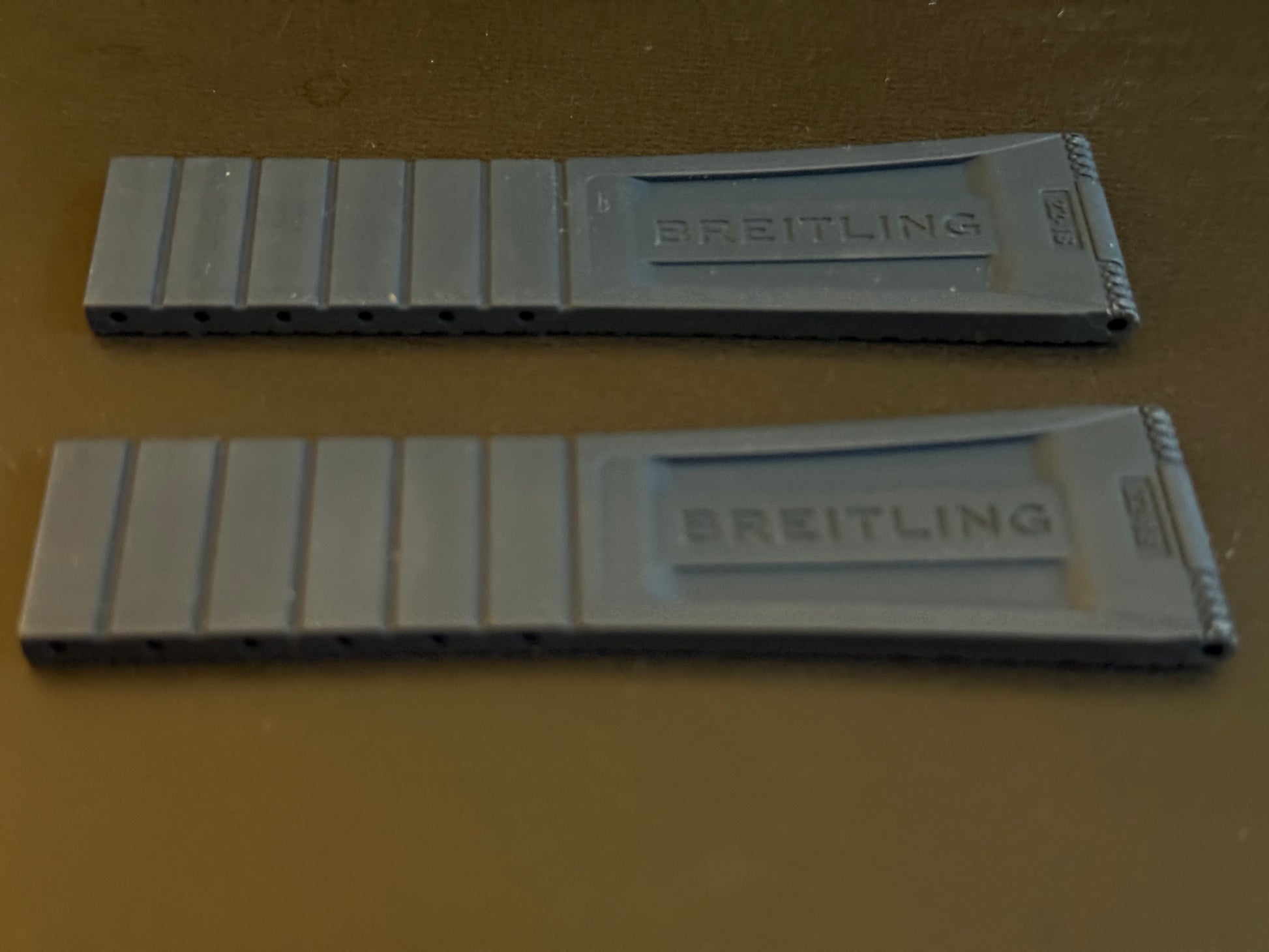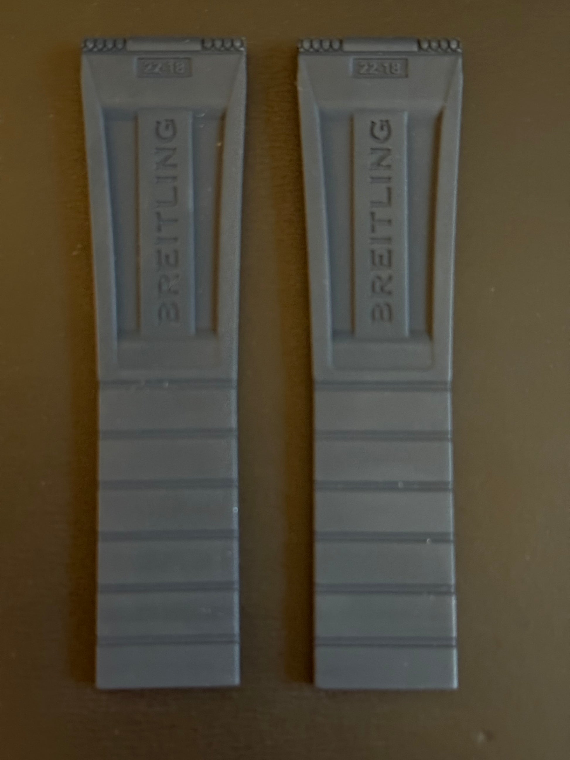 Enhance the style of your Breitling watch with this 22-18 Navy deployment Diver Pro III model rubber strap. The two-piece strap has a band width of 22mm and is compatible with 18MM Breitling deployant clasps (if require I have for sale in steel and PVD or DLC). The color and theme of this wristwatch band perfectly complements the diver style of the watch.