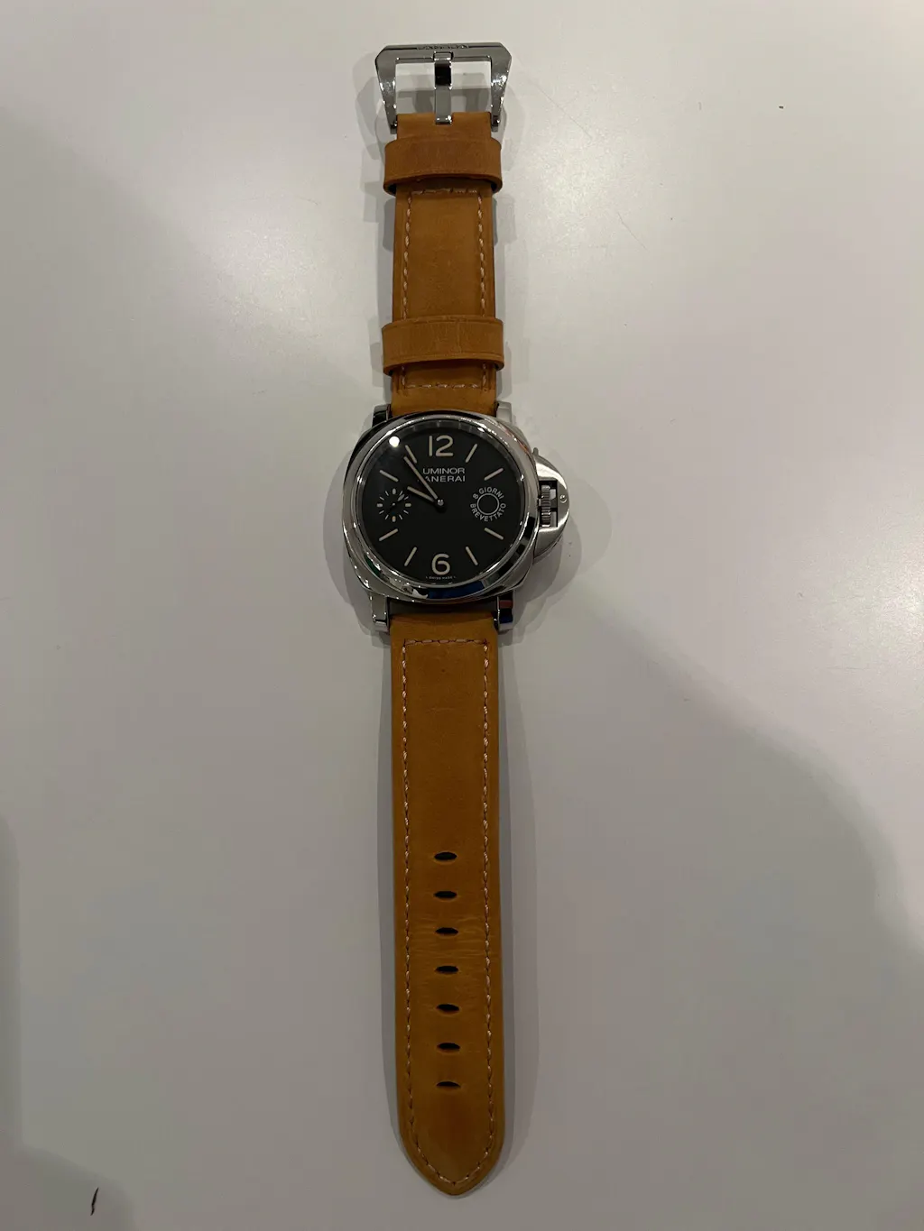 New Panerai Brown Suede OEM Strap 24mm Lug for TANG Buckle. Strap will fit all 44mm Panerai Models. 120/75MM strap size. Will not fit a deployant clasp buckle.