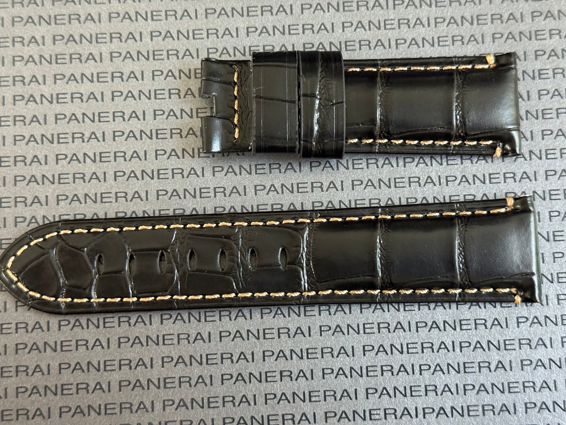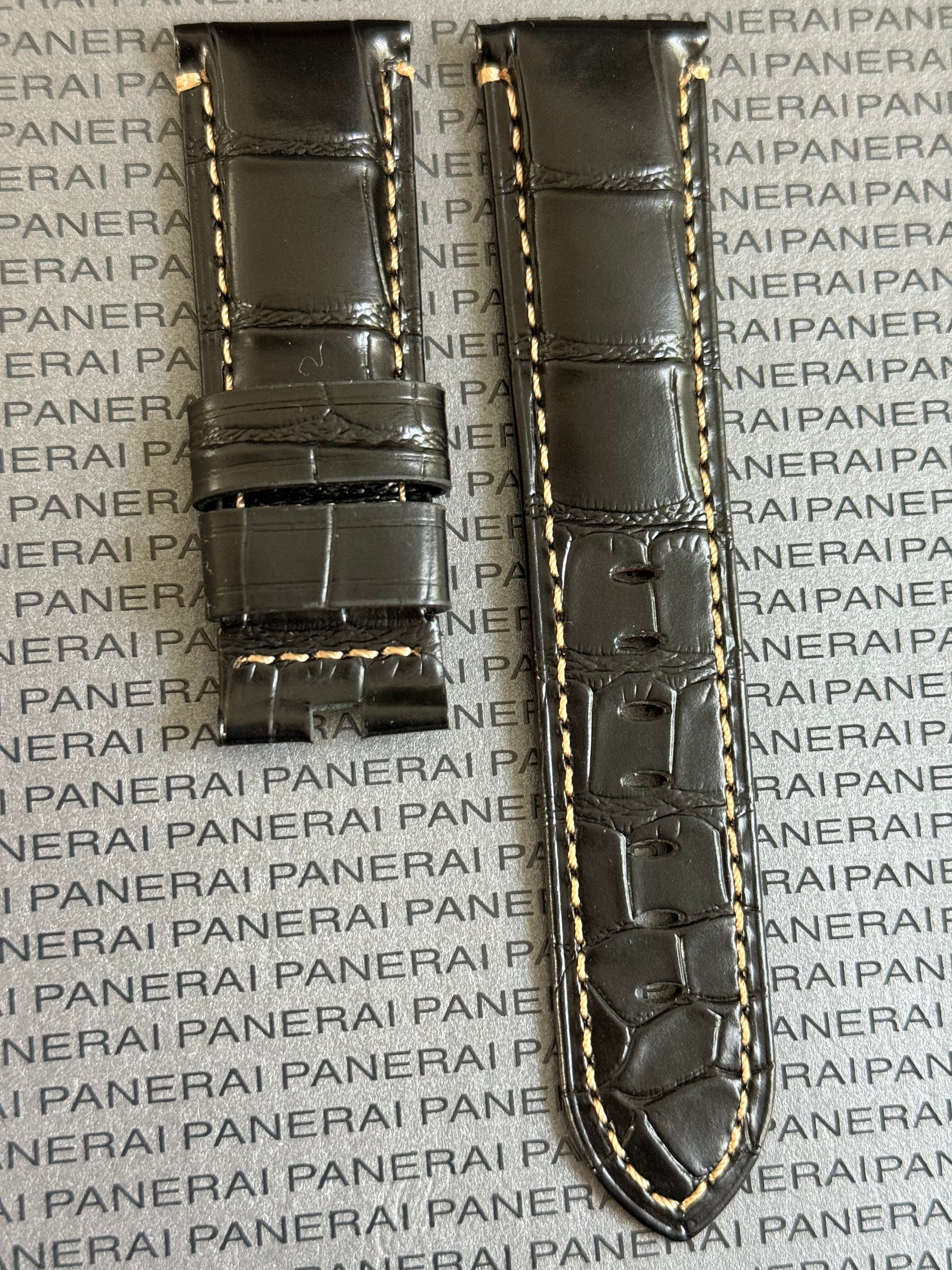 Panerai XL Black Alligator OEM Strap w Beige Stitching for Deployant Buckle (24/22MM)