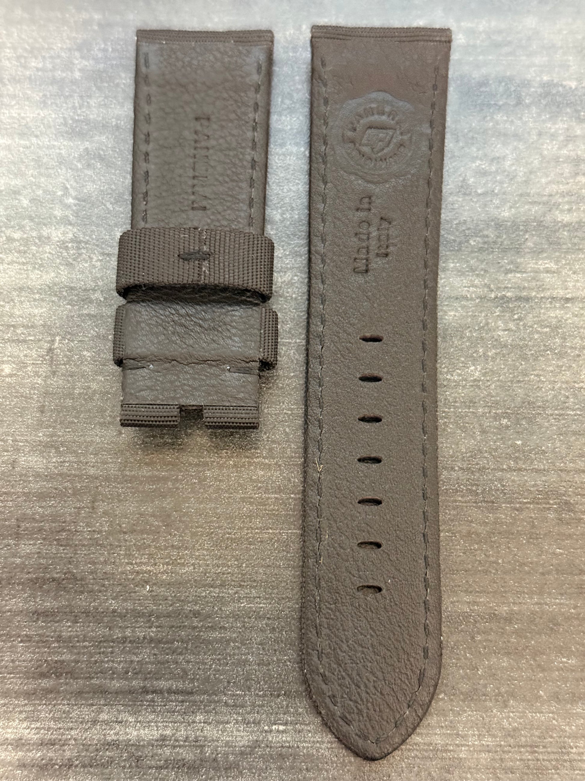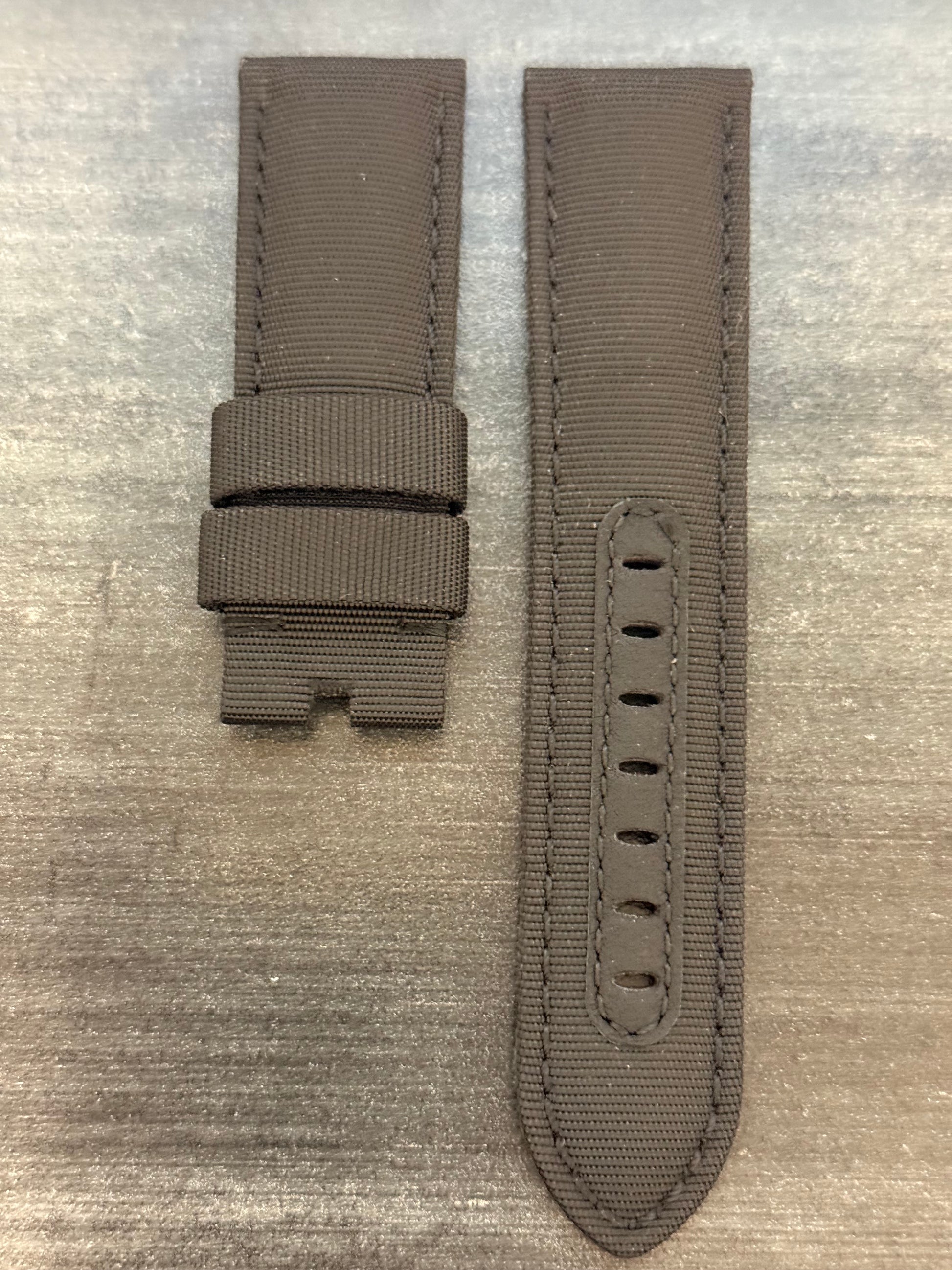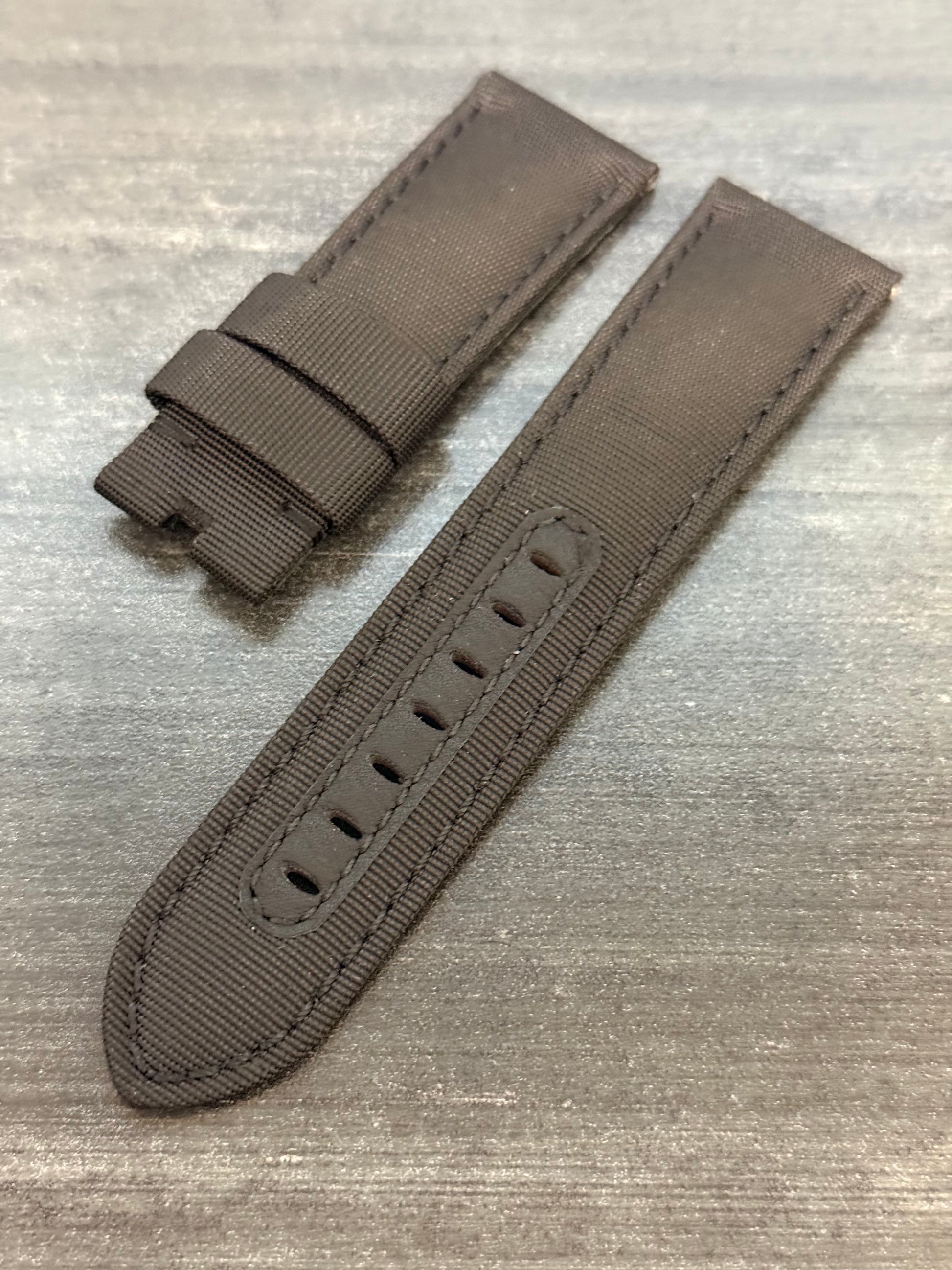 Panerai PET recycled Black 24/22MM Tang Strap. This is a new style strap! Material is waterproof and perfect for summer. Panerai OEM strap for tang buckle w steel tubes. Measures 24/22mm and 125/74MM length. Fits all 44mm Panerai models (will not fit 40 or 42mm models). Strap will NOT work w deployant clasp.
